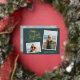 Festive holiday carte photo présente deux photos en style instantané, avec "Joyeux Noël" en écriture dorée embellie. Personnalisez avec votre signature familiale et l'année.
