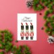 Trois soldats jouets en manteaux rouges et hauts chapeaux noirs avec des flocons de neige dorés sont prêts sur cette carte de vacances en feuille d'or. Le texte et la bordure avant sont en feuille d'or ! Le devant indique "Joyeux Noël" et le verso dit "Vous souhaitant paix et joie pendant cette période des fêtes" qui peut être personnalisé avec votre propre message de vacances.