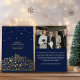 Souhaitez à vos clients, clients et partenaires d'affaires un Joyeux Noël avec cette élégante carte de Noël en feuille d'or avec des étoiles dorées qui brillent sur une ville la nuit, la ligne d'horizon de la ville aussi en feuille d'or. Personnalisez la carte de Noël d'affaires avec votre nom d'entreprise et une photo de votre équipe et un accueil de Noël personnel au dos.
