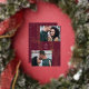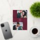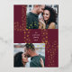 Un design carte photo de vacances élégant et unique avec deux photos horizontales ou orientées paysage alignées aux angles, avec "JOY" recouvert de papier doré étoilé sur un arrière - plan de prune de canneberge foncé contrastant. Personnalisez avec votre nom de famille et l'année dans le centre.