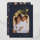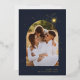 Un design chic et élégant de carte de vacances avec une seule photo verticale ou portrait dans un agencement unique en arc, agrémenté d'une étoile tournante en feuille d'or. Personnalisez avec votre salutation et vos noms de vacances personnalisés.