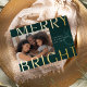 Une carte de vacances moderne et colorée avec une photo horizontale ou orientée paysage avec "Merry & Bright" recouvert de papier doré surdimensionné. Personnalisez avec votre salutation de vacances personnalisée, le nom de famille et l'année. Un choix chic et moderne minimaliste pour vos voeux de Noël.