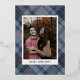 Célébrez les vacances avec cette simple carte de Noël qui présente un arrière - plan bleu plaid avec une couverture en feuille d'or et une simple photo à l'avant. Images de Hannah Cook