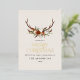 Carte de vœux de Noël festive en terre cuite noire florale botanique élégante cerf floral. Typographie véritable en feuille d'or, d'argent et de rose.