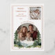 Celebrate a year of joy, growth, and new beginnings with this elegant two-photo Christmas card featuring a foil design. The front showcases a modern collage layout with a small rectangular photo at the top and a curved “the more the merrier” caption framing a circular photo below. An evergreen forest illustration flows across the bottom, adding warmth and natural charm to the design.