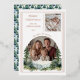 The back of the card coordinates beautifully with a pine and fir evergreen pattern and an arched message panel—perfect for sharing your family’s holiday greetings and the special announcement of a new baby. Thoughtful typography, timeless seasonal artwork, and a palette in varying shades of green make this card a heartfelt way to send Christmas cheer from your growing family.