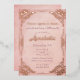 Cette invitation personnalisée enchanteresse a un beau thème de conte de fées. L'arrière - plan est un motif de papier rose passé qui ressemble aux pages d'un vieux livre. Un cadre ancien orné et brillant d'or rose véritable borde l'invitation. L'emblématique phrase féerique enchantée "Il était une fois" est imprimée dans une feuille d'or rose assortie.