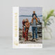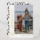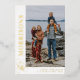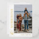 Carte de Noël blanche et or personnalisée avec une photo et votre nom de famille dans un script en feuille d'or à côté du dans un script tourbillonnant. Carte de Noël moderne en blanc avec papier doré.