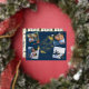 Un vrai pied religieux moderne Carte de vacances avec l'expression "Frissons de l'espoir" dans le centre sur un arrière - plan de la marine, entouré de 4 de vos photos préférées. Au verso est un motif de feuilles verts et navals et de pins sur un arrière - plan crème.