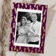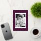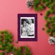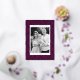 Carte Thanksgiving moderne avec votre photo encadrée en blanc avec un arrière - plan de feuillage violet foncé et doré. Personnalisez la feuille Carte Thanksgiving avec votre salutation personnalisée, votre nom de famille et votre année en gras feuille or. La photo Thanksgiving carte inverse pour afficher votre message personnalisé en lettres blanches avec un arrière - plan violet.