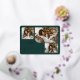 Notre carte de vœux festive et élégante est le moyen idéal pour mettre en valeur trois de vos photos de famille préférées. La conception horizontale ou paysage présente "Joyeuses Fêtes" en typographie dorée brillante et en écriture manuscrite, avec le nom de votre famille en dessous sur un fond vert chasseur.