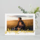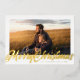 Merry Christmas Holidays Script in real foil gold, wishing your loved ones in style. Your photo on the back or current backing pattern. Funky Calligraphy script style. Lettering style. Big photo design. Happy, festive design.