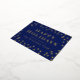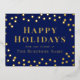 Carte de vœux professionnelle personnalisée avec le nom de votre entreprise en doré à chaud. Carte de vœux entreprise bleu foncé et or avec un message personnel et des confettis imprimés en véritable dorure à chaud. Carte de vœux bleue et dorée pour une entreprise.