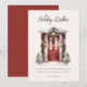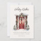 Carte de vœux plate avec un texte moderne "Vœux de fêtes" et une image d'une porte d'entrée décorée de verdure de Noël et un espace supplémentaire au dos pour un message personnel.