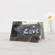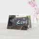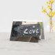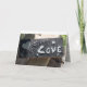 carte de voeux, tous les jours/amour/appréciation ...dehors a un lino-bloc sculpté du mot "amour" et un coeur - à l'intérieur : en espagnol : "Cada dia te quiero mas que ayer y menos que manana" ("Je t'aime plus qu'hier, mais pas autant que demain)...à l'intérieur : gris clair avec un arrière - plan en dentelle