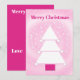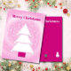 Changez vos vœux de Noël avec ce design de Noël moderne. Toujours en utilisant les couleurs saisonnières traditionnelles, ce design utilise le rose et le blanc. L'arbre blanc est orné de décorations et est entouré d'un tourbillon d'étoiles et de flocons de neige. Il y a de la place pour votre message de vacances au dos avec le mot 'Amour' qui peut être supprimé si vous ne voulez pas l'utiliser. Carte de vœux de Noël moderne et simple.