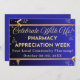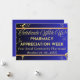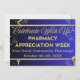 Montrez votre gratitude à votre équipe de pharmacie préférée avec cette carte de voeux élégante et personnalisable. Le design moderne présente de beaux confettis en faux or sur un arrière - plan bleu foncé et riche. Le modèle personnalisable vous permet d'ajouter facilement le nom de votre pharmacie et la date sur le devant. L'intérieur est vide pour écrire un message personnel et sincère. C'est une façon élégante de vous remercier et de célébrer votre équipe de travail acharnée pendant la Semaine de l'appréciation en pharmacie.