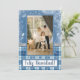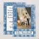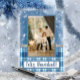 Cette carte aux tons bleu, blanc et argent avec un motif de carrés et un imprimé de flocons de neige est élégante et traditionnelle. Sur le devant, il est écrit "Joyeux Noël!", mais vous pouvez changer le message et la langue si vous préférez. N'oubliez pas de remplacer la photo d'exemple par la vôtre. Au dos, le motif bleu se poursuit. Il comprend un joli message pour vous faciliter la tâche d'en écrire un nouveau, même si vous avez la possibilité de le personnaliser si vous le souhaitez. N'oubliez pas non plus d'ajouter le nom de votre famille et l'année.