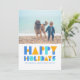 La carte de vœux festive avec collage de photos colorées Joyeuses Fêtes présente un design amusant bleu et or, avec de la place pour une photo chérie sur le devant et quatre autres photos au verso. Personnalisez le message pour envoyer des vœux chaleureux à vos proches d'une manière unique et colorée. Faites de cette saison des fêtes un moment inoubliable avec notre collection de cartes joyeuses et personnalisables.