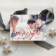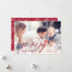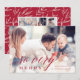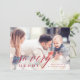 Élégante carte de vœux photo avec une photo orientée paysage en plein saignement avec un effet de lumière bokeh en surimpression pour un look festif et joyeux. "Très joyeux" est superposé en rouge canneberge festif en script et en lettres capitales, avec votre/vos nom(s) et message personnalisé à côté. Ajoutez deux photos supplémentaires au verso, ainsi qu'un message personnalisé, sur un fond à motif botanique rouge et crème.