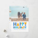 La carte de vœux festive de fêtes avec collage de photos colorées présente un design amusant bleu et or, avec de la place pour une photo chérie sur le devant et quatre autres photos au dos. Personnalisez le message pour envoyer des vœux chaleureux de fêtes à vos proches d'une manière unique et colorée. Faites de cette saison des fêtes un moment inoubliable avec notre collection de cartes joyeuses et personnalisables.