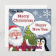 Partagez la joie des fêtes avec cette adorable carte de Noël représentant le Père Noël disant "Joyeux Noël" et un mignon manchot ajoutant "Bonne année". Parfait pour envoyer des vœux chaleureux et des sourires cette saison !