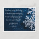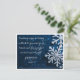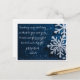 Carte de vœux de fête idyllique avec un fond bleu minuit et des flocons de neige scintillants.