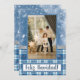 Cette carte aux tons bleu, blanc et argent avec un motif de carrés et un imprimé de flocons de neige est élégante et traditionnelle. Sur le devant, il est écrit "Joyeux Noël !", mais vous pouvez changer le message et la langue si vous le préférez. N'oubliez pas de remplacer la photo d'exemple par la vôtre. Au dos, le motif bleu se poursuit. Il comprend un joli message pour vous faciliter la tâche d'en écrire un nouveau, même si vous avez la possibilité de le personnaliser si vous le souhaitez. N'oubliez pas non plus d'ajouter le nom de votre famille et l'année.