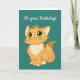 Carte de voeux Fluffy Orange Cat Design avec couleur arrière - plan personnalisable. Extérieur Texte : C'est ton anniversaire !. Le texte intérieur dit : "J'espère que c'est la mienne du chat ! ". Ou customisez avec votre propre texte et votre propre police.