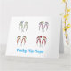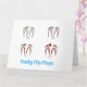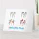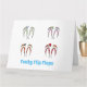 Quatre paires de tongs funky sur une carte de vœux blanche