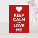C'est la carte de vœux "Garde ton calme et aime-moi" classique et très mignonne. Avec un cœur au-dessus des mots, cette carte est la carte unique parfaite pour lui ou elle pour la Saint-Valentin... Procurez-vous la vôtre dès aujourd'hui !