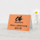 C'est éffrayant effrayant Happy Halloween carte avec la sorcière volante et son balai. C'est une carte d'Halloween amusante. Ceci est personnalisé customisé vintage Happy Halloween Greeting Card.