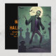 Apportez un peu de plaisir macabre à la saison d'Halloween avec notre carte-cadeau « Zombie Zest » ! Ce design original présente un zombie de dessin animé avec une peau verte, des vêtements en lambeaux et un sourire niais, tendant la main dans une pose classique de zombie. Sur fond de cimetière brumeux avec des pierres tombales de travers et une pleine lune lumineuse, cette carte capture parfaitement l'ambiance ludique et effrayante d'Halloween.