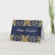 Belle carte de voeux Hanoukka personnalisée. Un joli bleu sur tan damask design sur l'arrière - plan, avec une bande centre bleu marbré qui a Happy Hanoukka, en texte de script blanc. Salutation et signatures à l'intérieur, avec une élégante décoration Star of David. Customisez cette grande carte de vacances avec votre propre texte à l'intérieur.