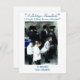 Cette carte de Channukah présente un groupe d'individus engagés dans la prière au Mur de l'Ouest, un site religieux important. L'image représente un mélange d'adultes et d'enfants, tous vêtus d'une tenue juive traditionnelle, dont des casquettes noirs et des châles de prières. Les individus tiennent des livres de prières, profondément immergés dans leur observance religieuse. La scène est dressée contre l'ancien mur de pierre, ajoutant un contexte historique et spirituel à l'image.