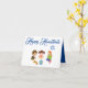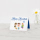 Carte de Hanukkah personnalisée adorable avec des enfants jouant au jeu de dreidel et un message Joyeux Hanukkah sur la couverture. Message intérieur : Que votre maison soit remplie d'amour et de lumière cette saison de Hanukkah