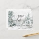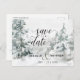 Cette belle carte postale "save the date" représentant une forêt à l'aquarelle verte et blanche présente une forêt d'evergreen enneigée sur un fond blanc brillant. La phrase "save our date" est créée avec une police cursive de lettrage à la main et tous les détails sont écrits en noir. Vous pouvez personnaliser cette carte "save the date" avec tous vos détails importants. Le verso comporte plus de détails et un espace pour que vous puissiez adresser la carte postale. Cette carte "save the date" est coordonnée avec les autres produits de la collection de mariage Winter Wonderland.