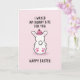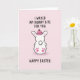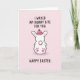 Cette carte montre un simple lapin de dessin animé 🐰 vu de dos, centré sur un fond rose pastel doux qui donne l'impression d'un moment privé et doux. Le lapin est d'un blanc éclatant avec des formes arrondies, une queue en boule duveteuse et des coussinets de pattes teintés de rose, ce qui ajoute une touche de coquetterie. Un bonnet en tricot fuchsia serré est posé sur sa tête avec une texture côtelée et un pompon duveteux, faisant écho aux accents roses et lui donnant un air coquin et amical. La pose donne l'impression que le lapin se montre malicieusement à quelqu'un de proche, comme un partenaire ou un meilleur ami qui est dans le secret 🐇. En haut, une phrase effrontée apparaît en lettres majuscules noires épaisses, légèrement arquées au-dessus du personnage. Près du bas, un court vœu saisonnier est inscrit dans un texte noir assorti, espacé pour encadrer le lapin sans le recouvrir. De forts contours noirs définissent le lapin et les lettres, se