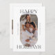 Cette carte double face Joyeuses Fêtes présente une calligraphie moderne et un collage de 4 photos au verso. Insérez vos photos préférées, ajoutez une touche personnelle avec votre propre message sincère, et personnalisez-la à votre goût. Photos de prostooleh / Freepik.