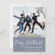 Carte de vœux de Noël moderne et simple. Le texte Joyeux Noël est en blanc, avec 1 photo. Des flocons de neige au verso avec un espace pour ajouter votre message spécial. Personnalisez avec vos informations uniques.