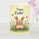 Ce dessin montre deux personnages ressemblant à des lapins avec une fourrure brune douce et de longues oreilles se câlinant au centre inférieur, leurs nez se touchant comme s'ils partageaient un moment calme et affectueux 🐰. Une légère rougeur rosée sur leurs joues et la façon dont leurs pattes reposent l'une contre l'autre suggèrent une amitié avec une pointe de romance. Ils sont assis dans une épaisse touffe d'herbe verte remplie de petites fleurs sauvages bleues, jaunes, roses et orange, comme une prairie printanière s'ouvrant autour d'eux 🌷. L'arrière-plan s'estompe vers le haut en une lueur jaune pâle avec des cercles de lumière dispersés qui ressemblent à des taches ensoleillées flottant dans l'air. Quelques papillons orange avec des touches de rouge voltigent dans la partie supérieure, guidant votre œil vers le message. Le message principal est placé près du haut en lettres brunes foncées fluides, se dét