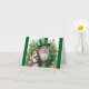 Une jolie image d'un lutin tenant un chien, est présentée sur cette carte de vœux pour la Saint-Patrick. À l'intérieur de la carte, on lit : "Joyeuse Saint-Patrick à vous et aux vôtres" ! Une carte douce à envoyer à la famille et aux amis pour la fête irlandaise.