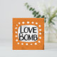 "Love Bomb" est un design de texte amusant avec une forme d'accent blanc entourée de points blancs texturés.