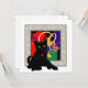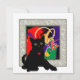 Petit chat noir doux aux yeux dorés portant un coeur d'amour sur la poitrine entouré d'un cadre Art Nouvea orné. Artiste, Margaret Loftin Whiting.