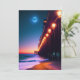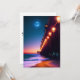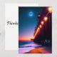 Une belle carte de voeux pour les amateurs de plage dispose d'une jetée avec des lampadaires éclairés et une pleine lune brillante à la tombée de la nuit. Conception créée à l'aide d'un logiciel AI. Texte "penser à vous" personnalisable