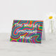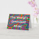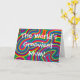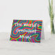 Carte de voeux au design tourbillonnant psychédélique avec le texte "La maman la plus gaie du monde !" En fonction du côté de l'étang où vous vivez, n'hésitez pas à remplacer "maman" par "maman" !