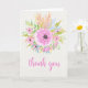 Voici une belle carte de voeux en Merci conçue avec des fleurs pastel aquarelle.