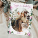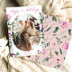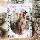 Cette carte de vœux moderne présente votre photo préférée avec des botaniques hivernales élégantes en rose et un script cœur calligraphié. Pour apporter des modifications à l'avance, sélectionnez Personnaliser -> Modifier à l'aide de l'outil de conception. La couleur de l'avant de la carte peut être modifiée en changeant la couleur de l'élément Arche.