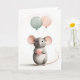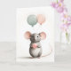 Œuvre d'art minimaliste de style boho d'une souris avec des ballons roses et verts. Carte de vœux vierge pour anniversaire, anniversaire de mariage, nouveau bébé, merci, etc.