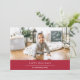 Moderne, simple et minimale, la carte de vacances photo présente votre photo préférée au format horizontal ou paysage avec une bordure inférieure rouge canneberge festive. Votre message personnalisé apparaît dans une police moderne blanche (illustré avec "Joie au monde"), avec le nom ou les noms de votre famille en dessous. Un motif subtil de flocons de neige est superposé sur les bords de votre photo pour un attrait festif. Les cartes sont imprimées au verso avec un motif hivernal de forêt avec des rennes et des flocons de neige en gris foncé sur fond blanc.